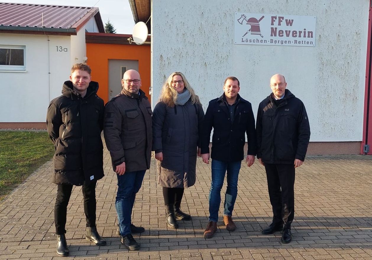 Am 29. Januar besuchte Christian Pegel, Minister für Inneres, Bau und Digitalisierung, die Gemeinde Neverin. Ich hatte Gelegenheit die Planung für den Neubau eines Feuerwehrhauses vorzustellen, der zukünftig Freiwillige Feuerwehr, Amtswehrführung und Gemeindezentrum an einem Standort vereinen soll. Das Gebäude, für das bereits eine Baugenehmigung vorliegt und die Planung der einzelnen Leistungsbereiche so gut wie abgeschlossen ist, wird rund 1,5 Mio. € kosten. Es wurden Fördermittel bei Land und Kreis von mehr als 1 Mio. € beantragt, um die sich die Gemeinde bereits seit fast 2 Jahren bemüht. Im Gespräch zwischen Minister, Mitarbeitern des Amtes und mir wurden Einzelheiten der Förderanträge und die nächsten Schritte besprochen. Nico Klose Bürgermeister